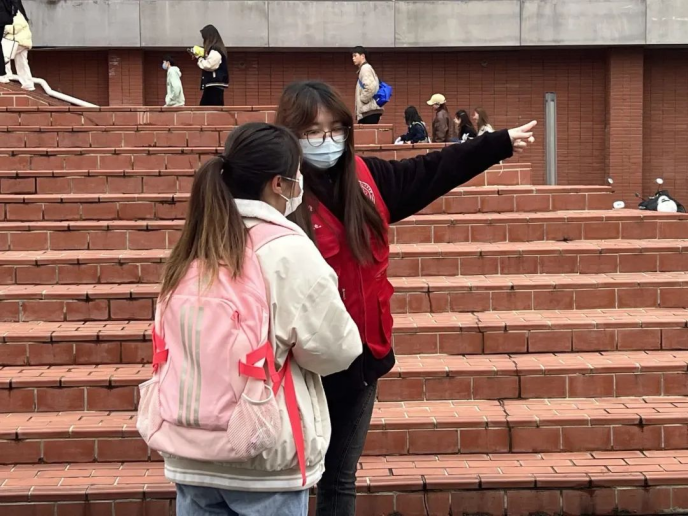 志愿者们分散在学校各处,为寻找考场的考生们指路,向需要帮助的考生们伸出援手,尽自己所能去帮助他人。春寒料峭,但志愿者们的热情让校园更加温暖。