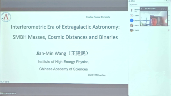 会议中,王建民研究员在光干涉时代的天文研究背景下报告了光干涉时代对河外超大质量黑洞的前沿宇宙学和低频率引力波研究。对黑洞天体的质量和距离测量方法、取得的重要科研成果进行了详细的介绍,对未来20-30年的河外星系超大质量黑洞的探测进行了展望。