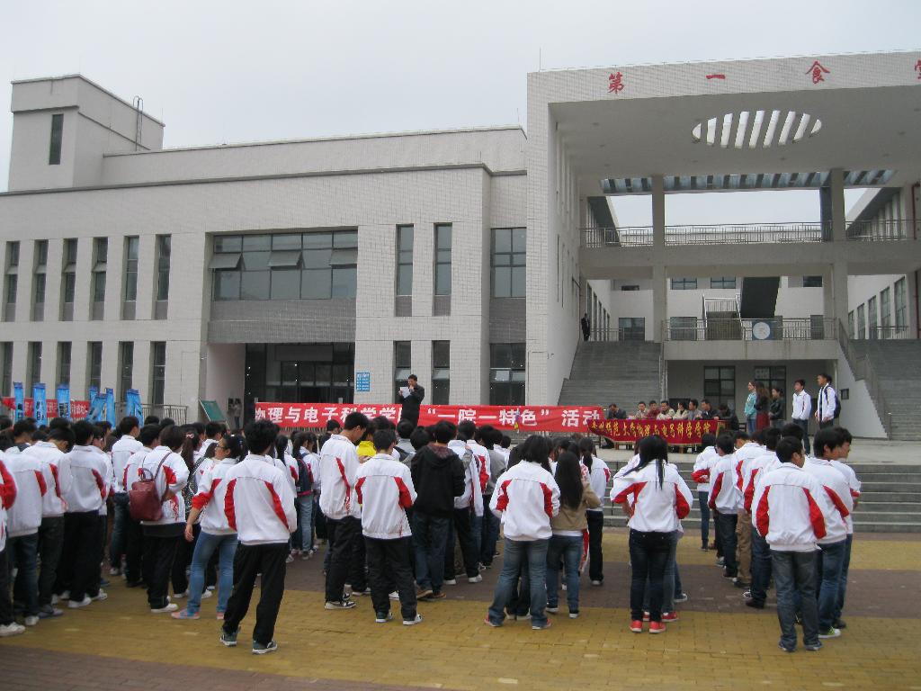 为了丰富花溪校区学生的课余文化生活,彰显物里与电子科学学院专业活动特色和服务本领,体现当代大学生的综合素质和潜在能力。学院于2013年4月2日在花溪校区第一食堂前开展“一周一主题,一院一特色”活动。中午12:30活动正式拉开帷幕,物理与电子科学学院党委副书记李应发老师、花溪校区各学院辅导员等领导出席了开幕式,活动由院团委书记秦欣老师主持。