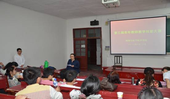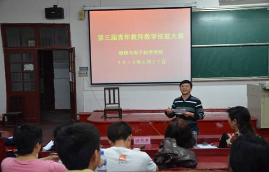 为进一步提升青年教师的教学水平,促进青年教师的快速成长,不断提高教学质量,2014年4月17日下午,物理与电子科学学院在物理楼731和732教室举行了第三届青年教师教学技能大赛。院长陈世国、院党委书记宇燕、副院长宋晓书以及部分教授作为评委参加了大赛。蓄势待发的青年教师们以及学生们齐聚一堂,准备欣赏一场视听盛宴!