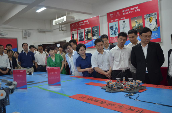 来访嘉宾实地参观了“量子筑梦创客空间”的创意作品展示、木工工艺展示、电子工艺展示,驻足观看了学院学生对机器人的操纵演示和3D现场打印。认真听取了院长陈世国的介绍和汇报,着重了解了3D打印技术成果转换、电子设计成果等方面的情况,参观过程中,来访嘉宾同学院青年学子热情交流,并给予了高度评价。