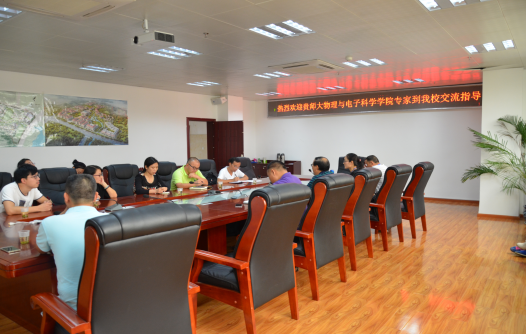 在会上,廖智勇校长首先代表贵州电子工业学校欢迎贵师大物电学院支启军院长一行,其次廖校长从学校发展、学科建设、新校区建设、及区位优势等方面介绍了贵州电子工业学校。