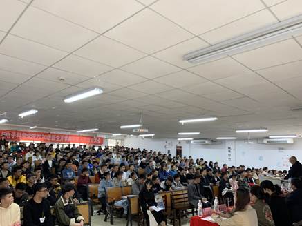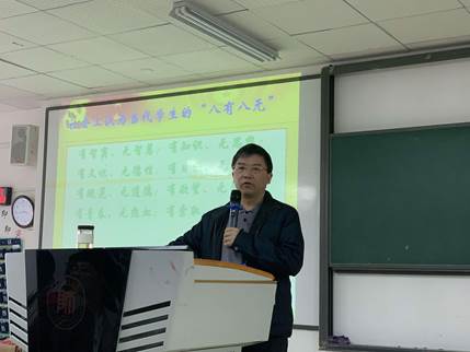 教师代表董爱军发言。他向来到物电这个大家庭的全体新生表示欢迎,希望全体新同学们应树立崇高的理想,牢记大学学习的责任和使命,常怀感恩之心,善于积累、积极进取、厚积薄发,勇于攀登科学高峰。