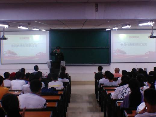 随后,退伍士兵代表、2018级电子信息科学与技术班彭锡明发言,他提到:非常感谢从军两年的军营生活,部队生活欢乐而充实,战场上真实且残酷,期望新兵同志们能坚定意志,克服困难,时刻牢记习近平总书记“强国必须强军,军强才能国安”的重要指示,在军营生活中不畏艰险、勇于拼搏,拿出“物电人”最大的勇气和担当,为国家国防事业贡献自己的力量。