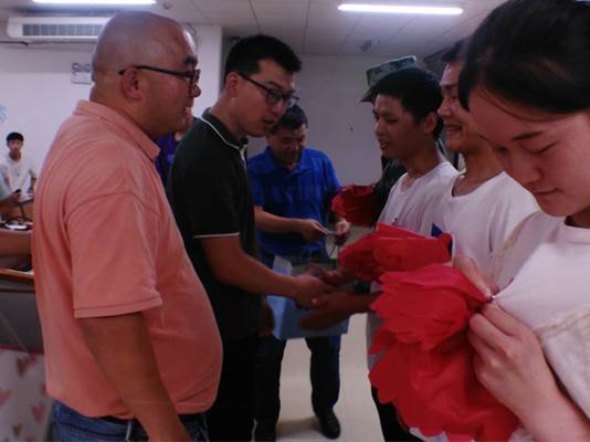 交流发言完毕后,学院领导为新兵同学们佩戴了大红花、发放了学院纪念品,并合影留念。