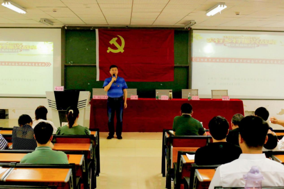 随后,陈世国为大会做出总结并为全体党员上了一堂题为《在推进乡村振兴建设美丽乡村的奋斗中绽放青春光彩》的专题党课。在党课上,陈世国围绕乡村振兴战略概念、乡村发展态势研判、乡村振兴战略布局、乡村振兴重点任务、乡村振兴实施路径等几个方面讲解,从强化村民主体意识,激发群众内生动力,加强产业培育,带动村民发展增收,深化环境整治,打造宜居美丽乡村。陈世国在党课上强调,蓝图已绘就,奋斗正当时,共产党员特别是青年学子要积极投身乡村振兴的大潮中,用入党誓词约束自己,用誓词鞭策、激励自己,立足本职岗位,做到忠诚干净担当,推动乡村振兴任务高质量完成,书写美丽中国的壮丽画卷,在推进乡村振兴建设美丽乡村的奋斗中绽放青春光彩。